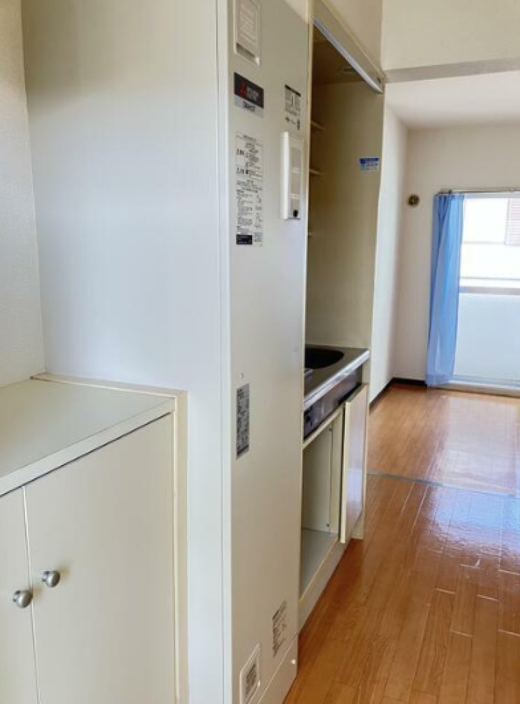 事務所使用可、保証人不要、B・T同室、シャワー、IHクッキングヒーター、収納スペース、シューズボックス、洗濯機置場、給湯、エアコン、バルコニー 室内洗濯機置場、エアコン付