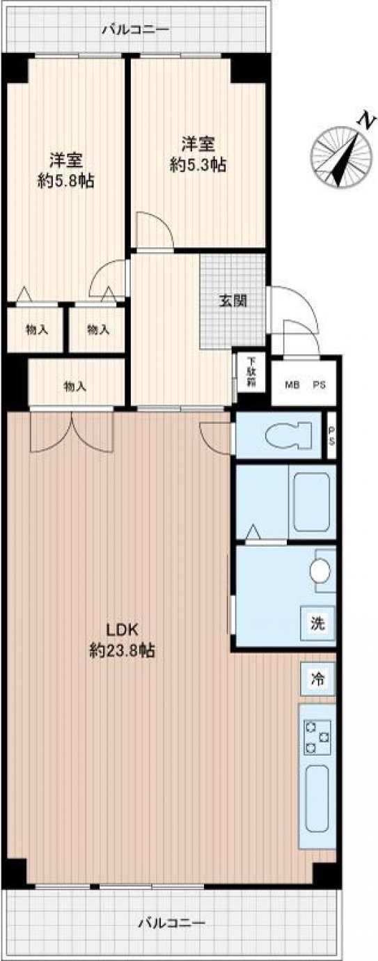 | 間取 | 2LDK ( LDK23.8帖 洋室5.8帖 洋室5.3帖 ) |