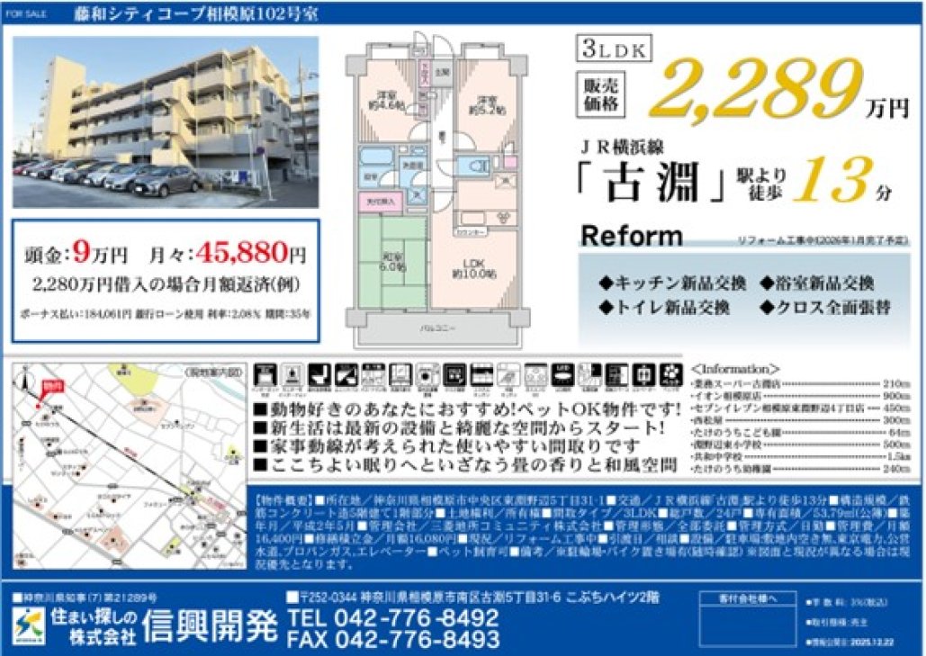 マンション 藤和シティコープ相模原 相模原市中央区東淵野辺5丁目 2,289万円 | 信興開発