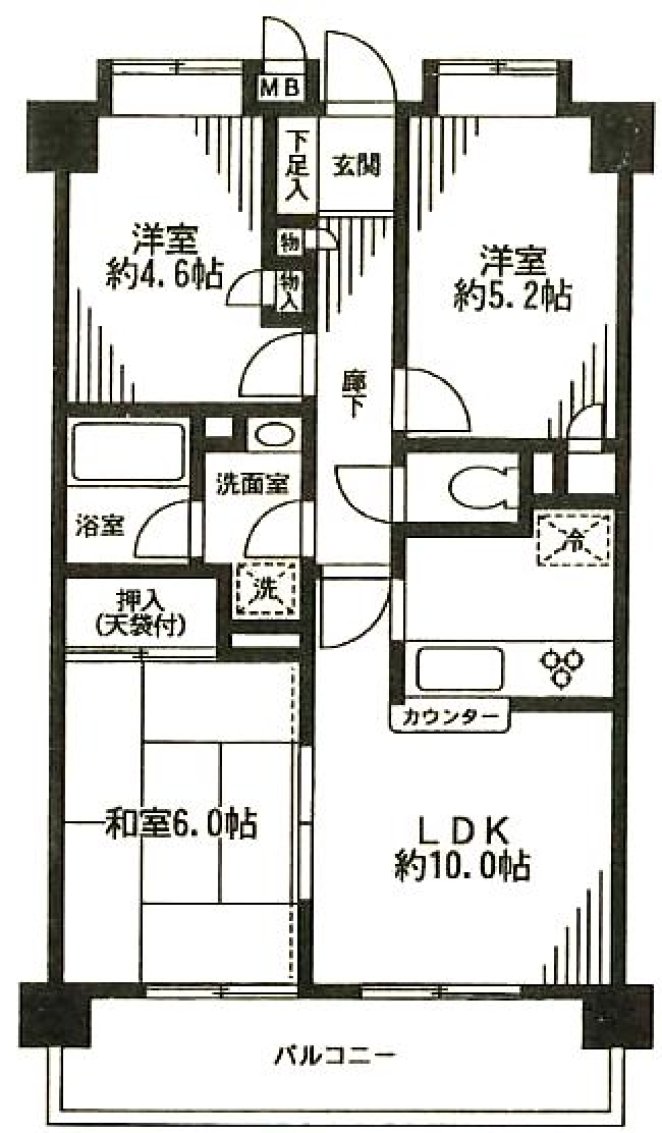 | 間取 | 3LDK ( DK7帖 和室6帖 洋室5.2帖 洋室4.6帖 ) |