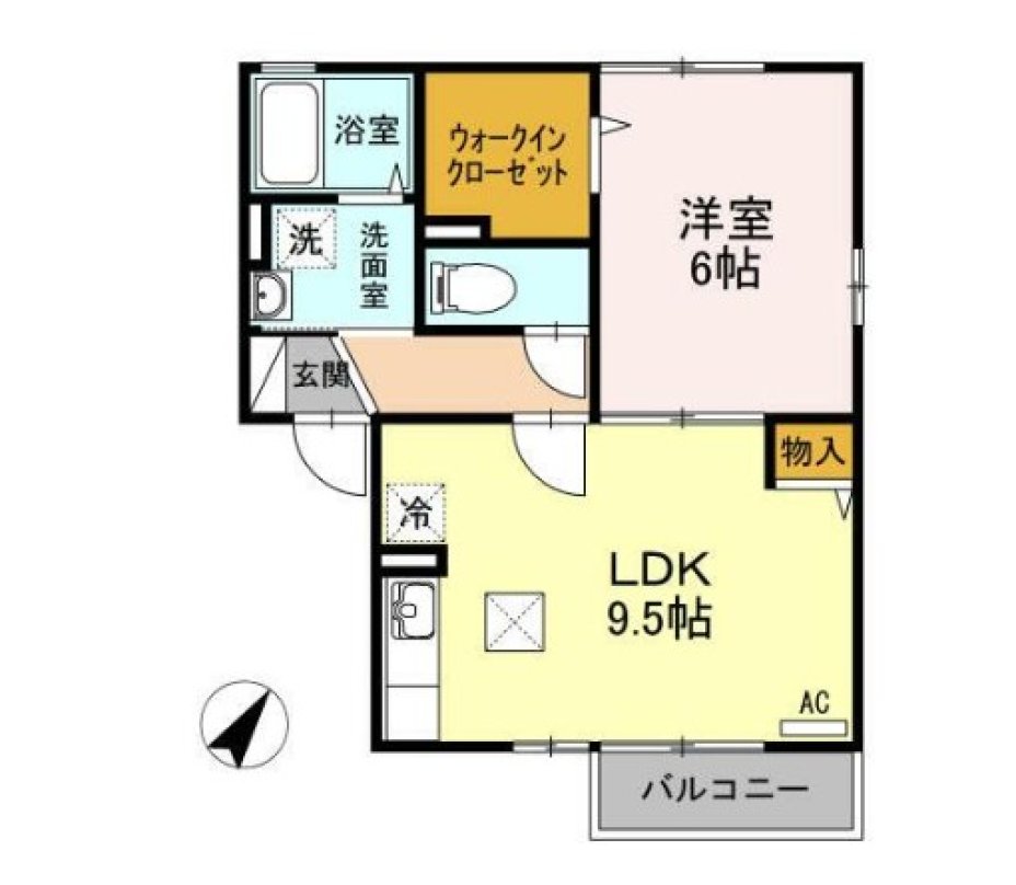 | 間取 | 1LDK ( LDK9.5帖 洋室6帖 ) |