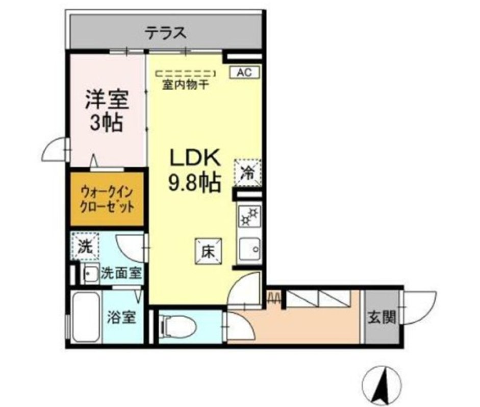 | 間取 | 1LDK ( LDK9.8帖 洋室3帖 ) |